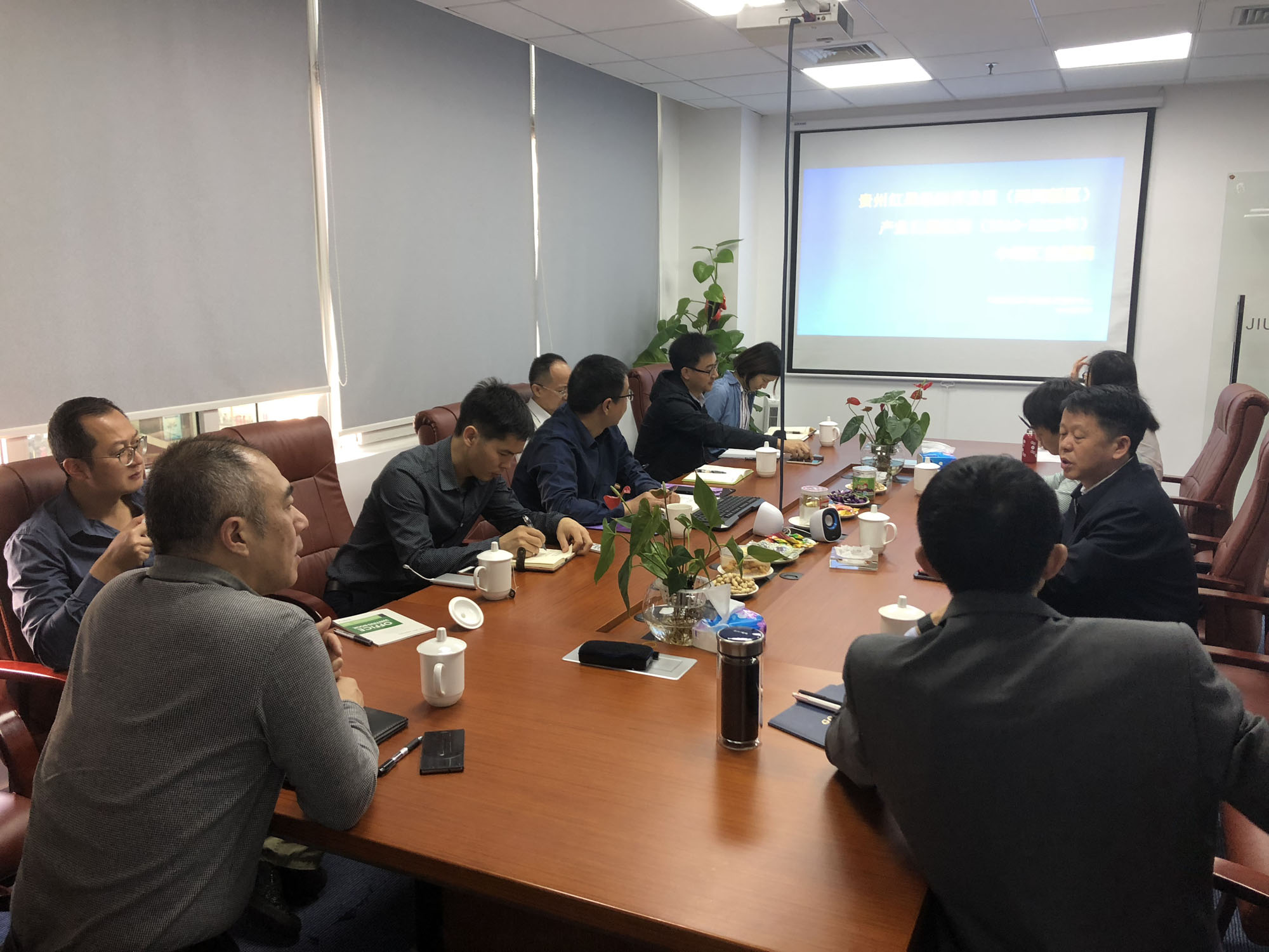 3月24日,盘州市红果经济开发区工委副书记、管委会常务副主任陈再仁及红果经济开发区经贸局局长王清华与我司红果项目组开展座谈会。会议开始由我司总经理陈骞汇报了项目规划的初期成果,随后项目组成员就各自研究领域进行踊跃发言。