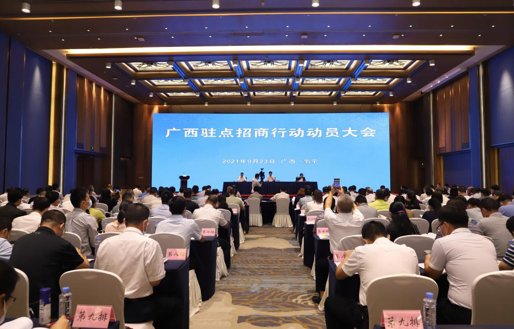 9月23日上午,广西驻点招商行动动员大会在南宁市圆满举办。广西壮族自治区副主席刘宏武、自治区人民政府办公厅二级巡视员戴倩、自治区投资促进委员会副主任兼办公室主任,自治区投资促进局党组书记、局长李常官等相关领导以及广西投资促进委员会有关成员单位,“行企助力转型升级”行动14个招商工作专班有关负责人,全区136支驻点招商工作小分队全体成员共700多人参加会议。