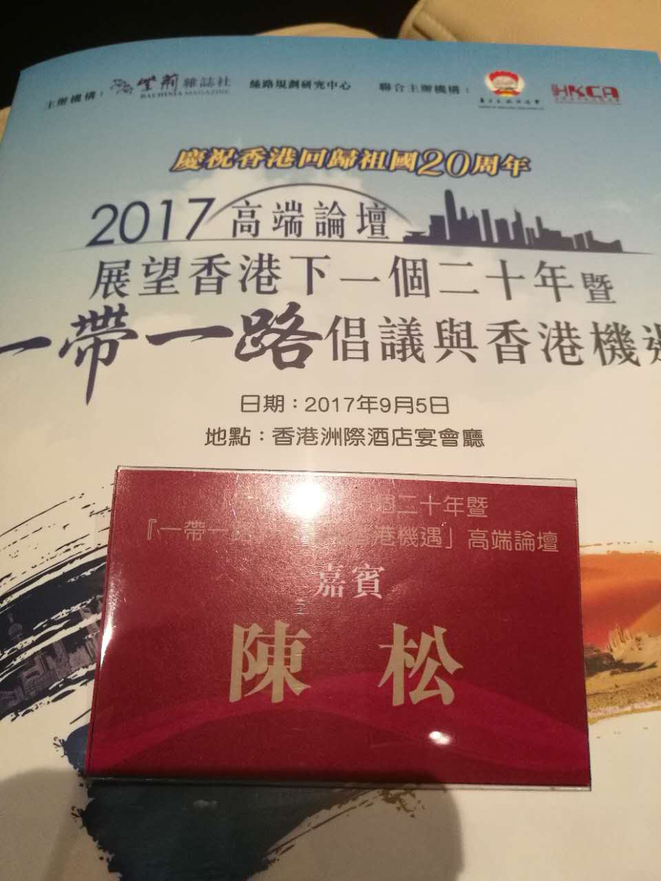 9月5日,我司董事长陈松受邀参加于香港洲际酒店举行的“展望香港下一个二十年暨‘一带一路’倡议与香港机遇”高端论坛。