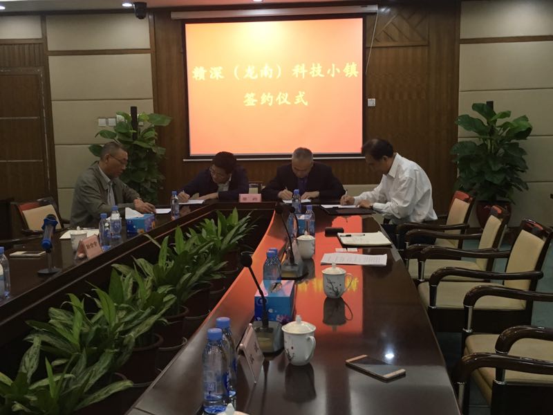 2017年3月30日,中国科技开发院、赣州龙南经开区、深圳市电子信息产业联合会、与玖诚投资在中科研发园孵化大楼会议室正式举行了“赣深(龙南)科技小镇签约仪式”,四方决定将通过整合发挥各自资源优势,把赣深(龙南)科技小镇打造成为“深圳电子信息产业外溢式发展的代表性基地”,争取成为江西省电子信息产业的代表性示范性园区,使龙南成为粤赣电子信息产业带上重要的产业枢纽。