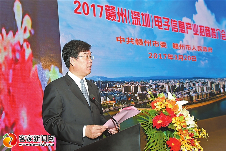 李炳军在致辞中说,深圳是改革开放和创新创业的高地,近40年来一直站在时代的前沿,创造着发展的奇迹,引领着改革的大潮,是内地学习的榜样。今天的赣州,经济发展态势更好、发展前景更好;政策“红利”更加丰厚、发展环境更加优化;主攻工业的力度更大、投资兴业的商机更多。电子信息产业是赣州重点推进的主导产业,也是赣州具有比较优势和发展潜力的产业。目前,我们围绕打造赣粤电子信息产业带,腾出空间、集群发展,专门出台了配套扶持政策,编制了产业发展规划,明确了相关县(市、区)的细分布局和主攻方向,做到了错位发展、配套发展。未来几年,电子信息产业将成为赣州爆发式增长的产业。